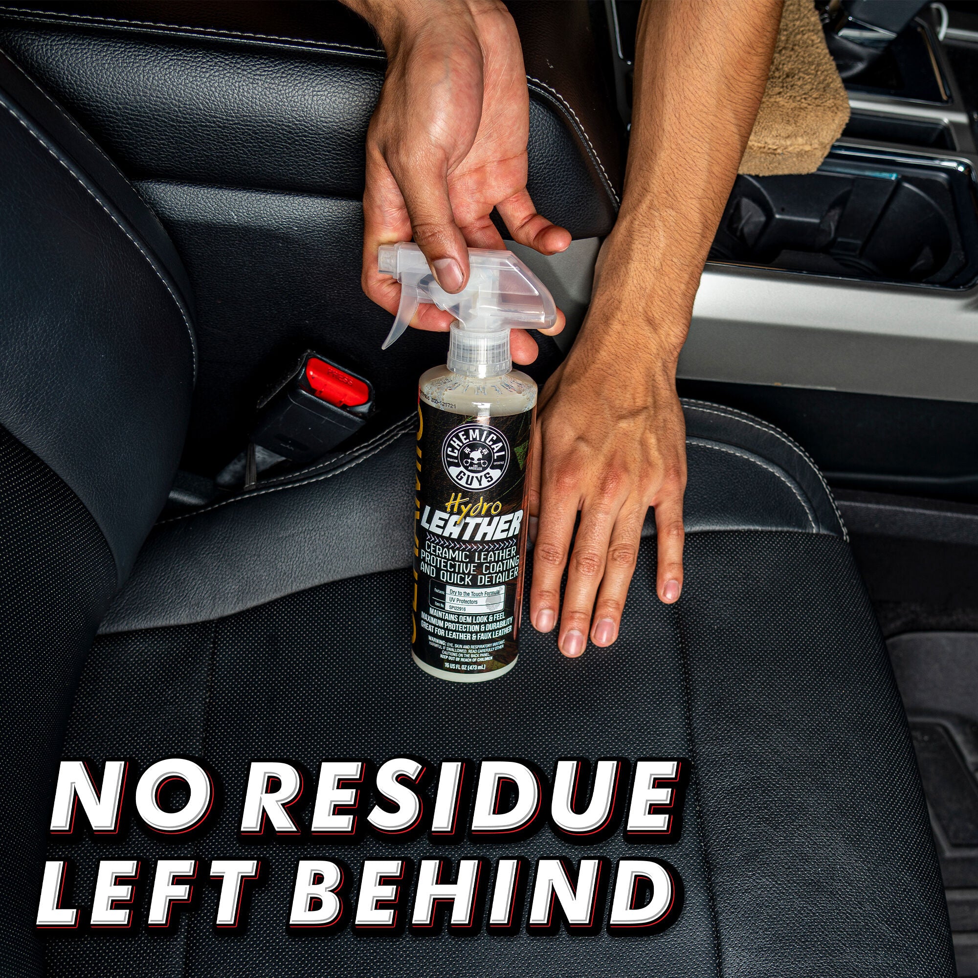 HydroLeather puts a durable. protective ceramic barrier on leather surfaces. which helps resist dirt. UV rays. and discoloration. Keep your leather looking and feeling brand new for longer without leaving behind any residue.