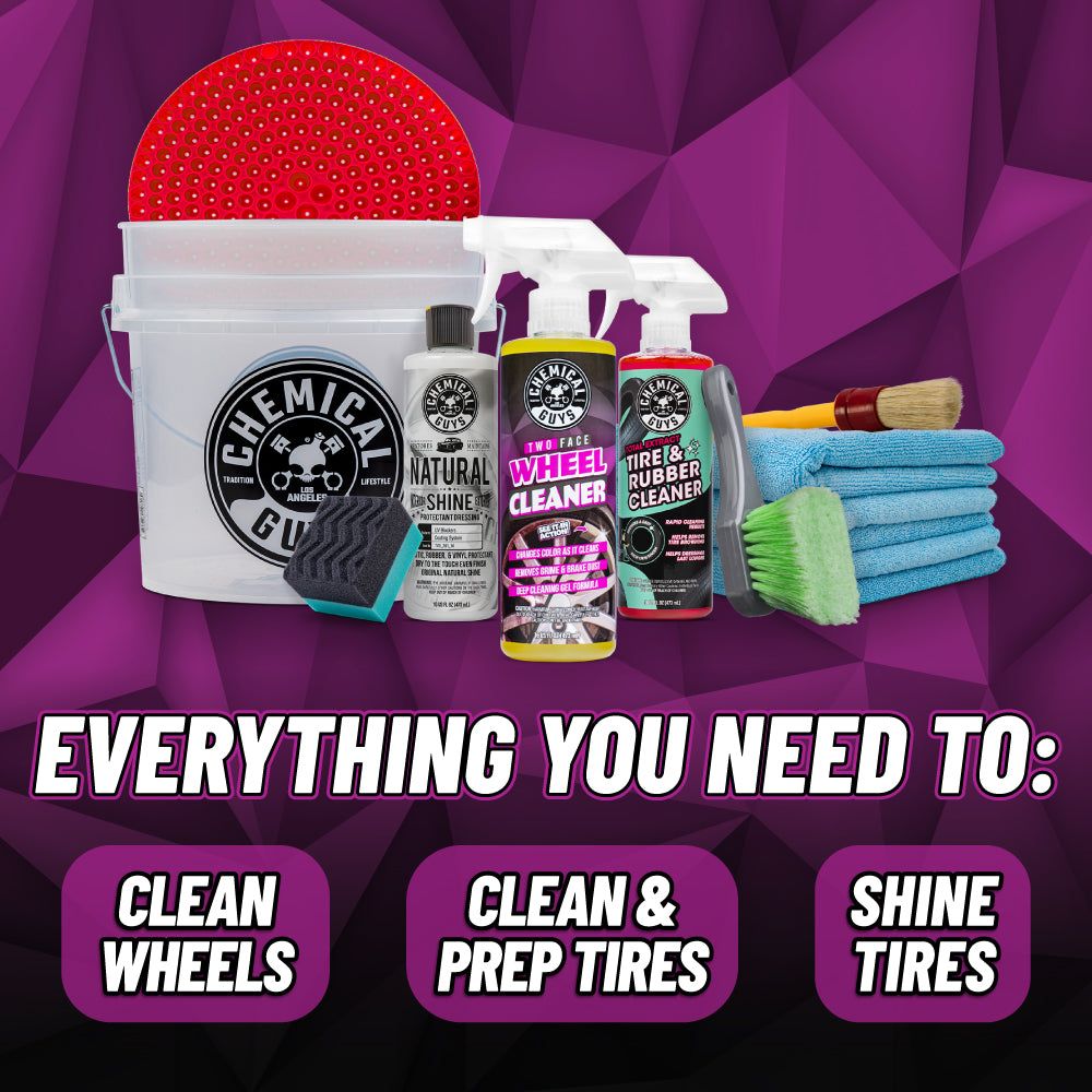 Ideal for quick. no-nonsense upkeep. the Two Face Wheel & Rubber Kit is your secret weapon for wheels that Wow! This compact powerhouse of a kit includes a color changing wheel cleaner that obliterates grime and brake dust. leaving your rims shining like new. And with the tire rejuvenator. your rubber gets a makeover too. with a deep. rich finish that turns heads.